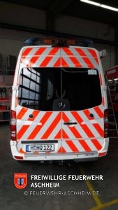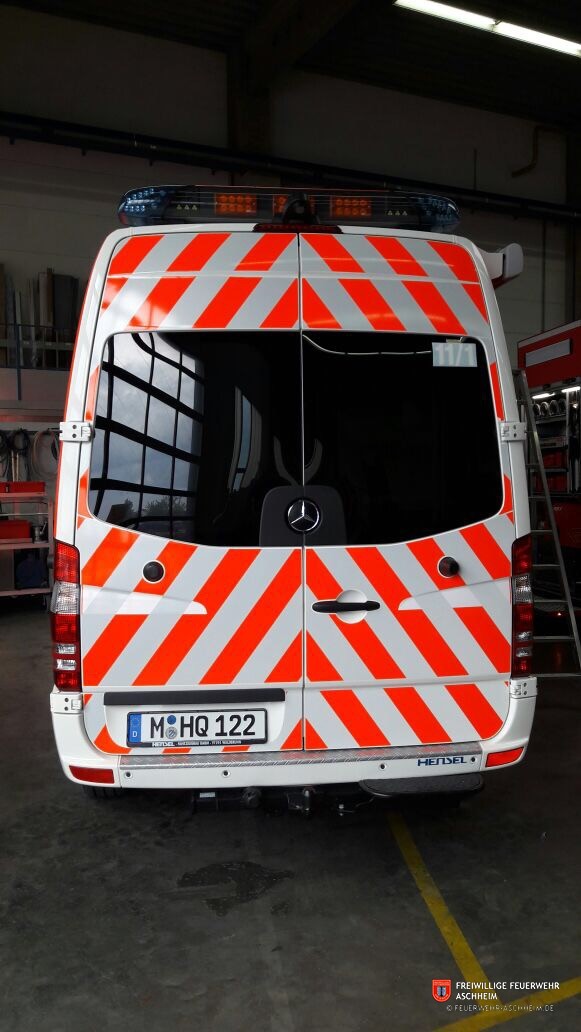 Warnblitzleuchten, Anhaltestäbe, Handlampen (Knickkopf), faltbare Pylonen 500mm, Faltsignale 700mm „Feuerwehr / Unfall / Rettungshunde“, Verbandskasten K mit Beatmungshilfe, Büromaterial, Stromerzeuger tragbar 3kVA