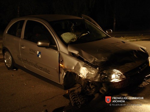 Die Feuerwehr Aschheim wurde zu einem Verkehrsunfall auf die Bundesstraße 471 alarmiert. Ein PKW wollte wenden und wurde dabei von einem weiteren PKW übersehen.