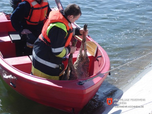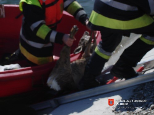 Die Feuerwehr Aschheim wurde zu einer Tierrettung an den Isarkanal gerufen. Passanten hatten beobachtet wie zwei Rehe erschöpft im Kanal schwammen und nicht mehr heraus kamen.