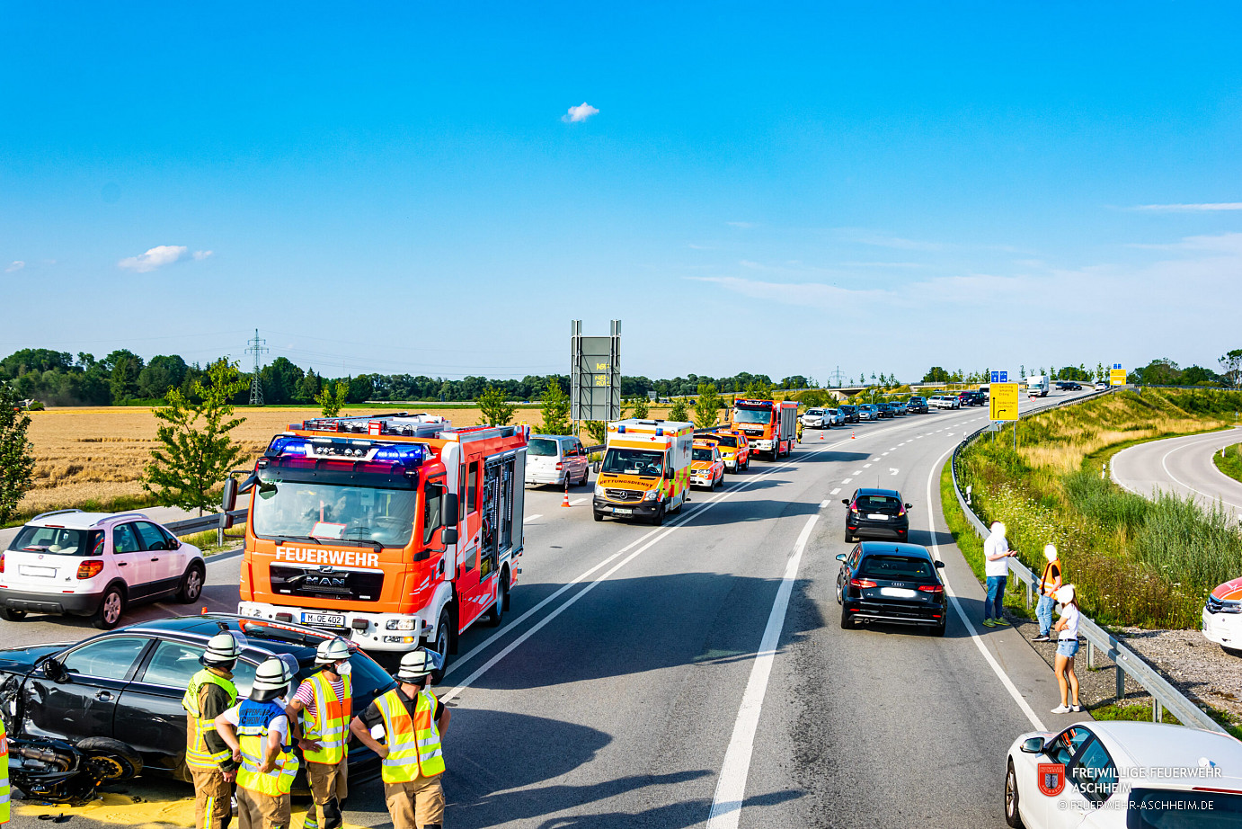 Mit dem Meldebild „THL 1 VU mit Motorrad“ wurde die Feuerwehr Aschheim zu einem Unfall zwischen einem Krad und einem PKW auf die M3 aufgrund auslaufender Betriebsstoffe vom Rettungsdienst nachgefordert.