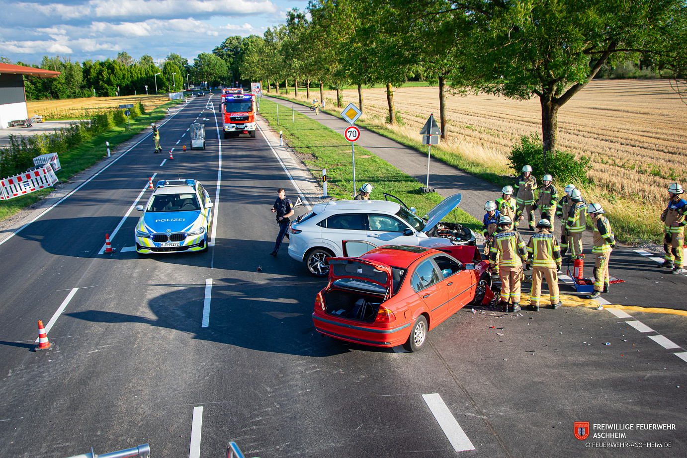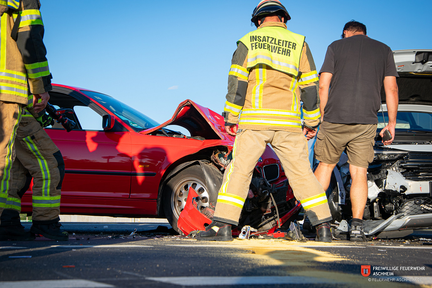 Die Kräfte der Feuerwehr Aschheim wurden aufgrund eines Verkehrsunfalls zwischen zweier Pkw in die Ismaninger Straße 100 in Aschheim gerufen.