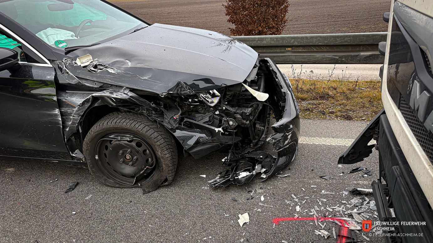 Lage: Zusammenstoß eines PKW mit einem LKW auf der Auffahrt zur B471 in Richtung Norden. Der PKW befand sich frontal rechts unter dem LKW. Der PKW war zwischen dem LKW und der Leitplanke eingeklemmt. Bei Ankunft der Feuerwehr waren bereits Kräfte der Polizei und des Rettungsdienstes vor Ort. Die Fahrerin des PKW wurde bereits versorgt und betreut. Der LKW-Fahrer war unverletzt.