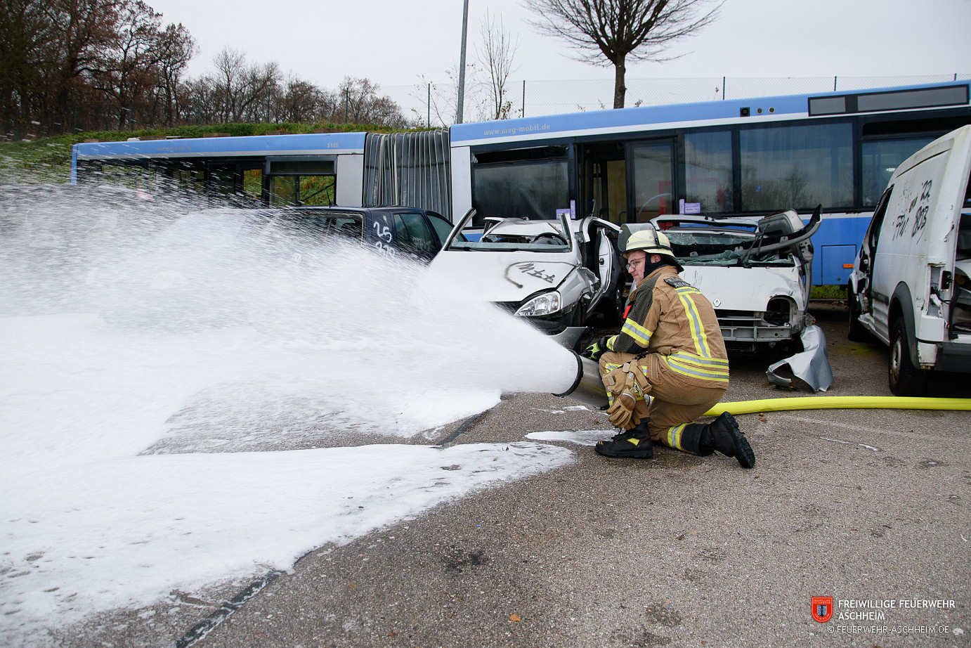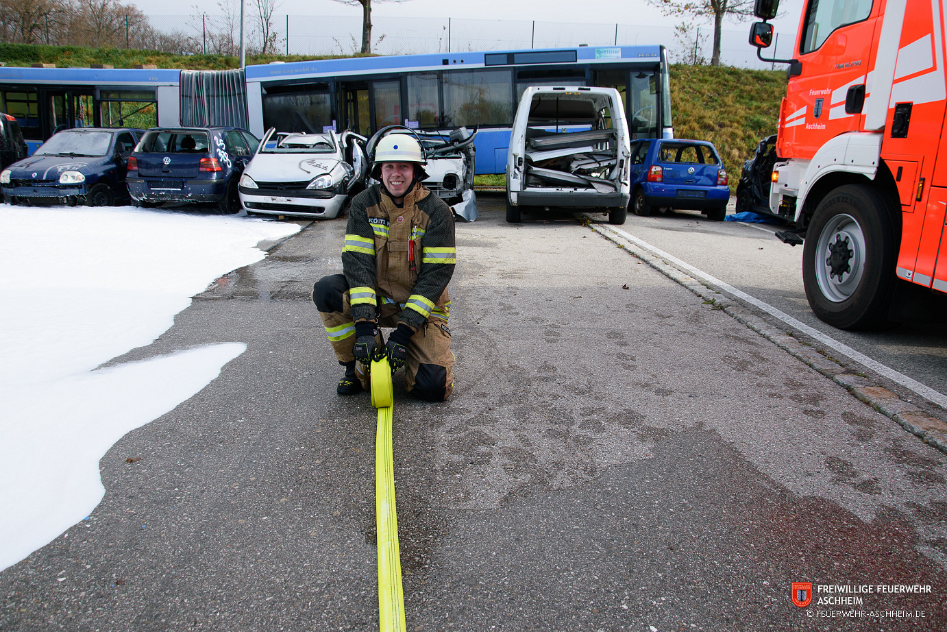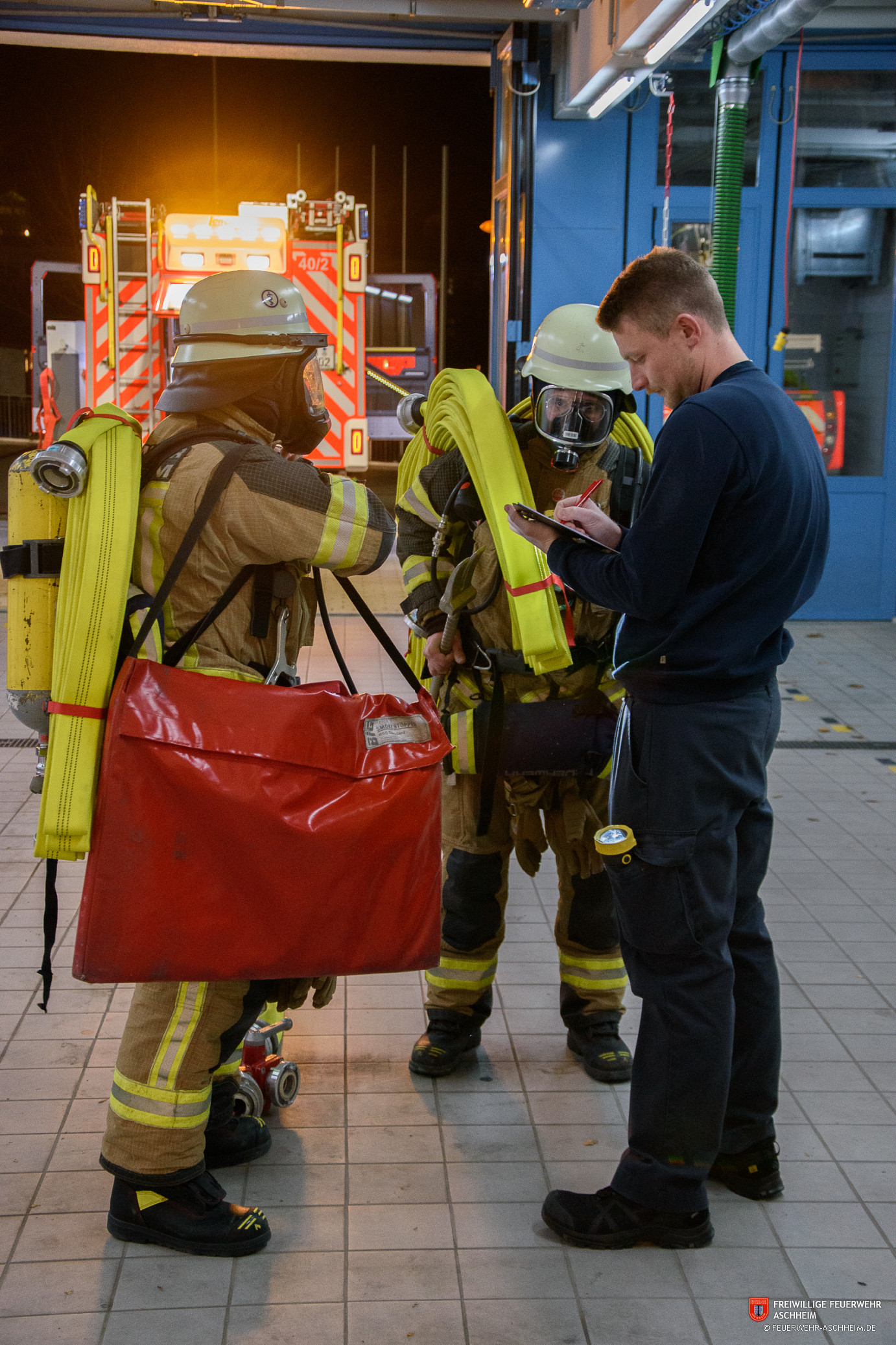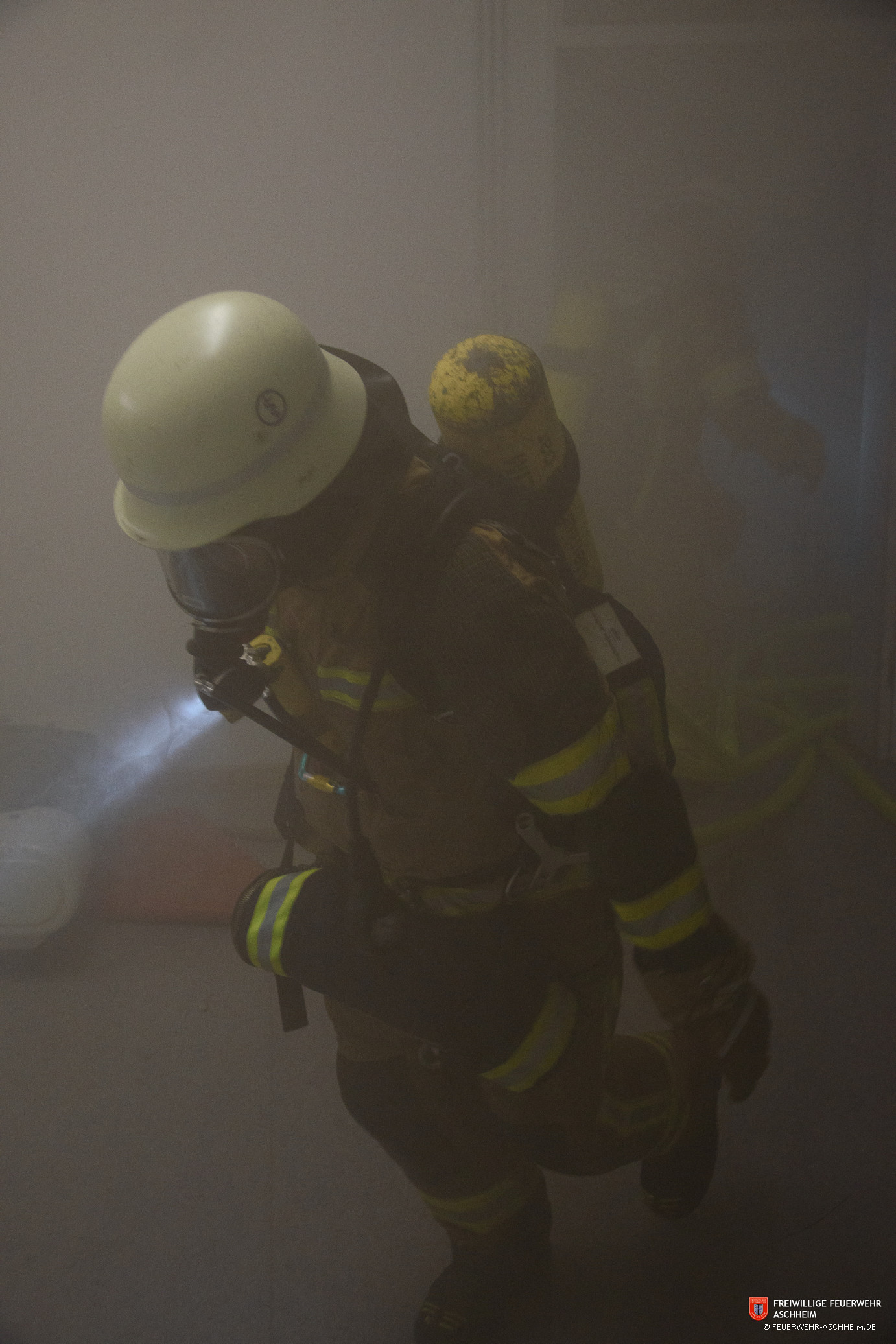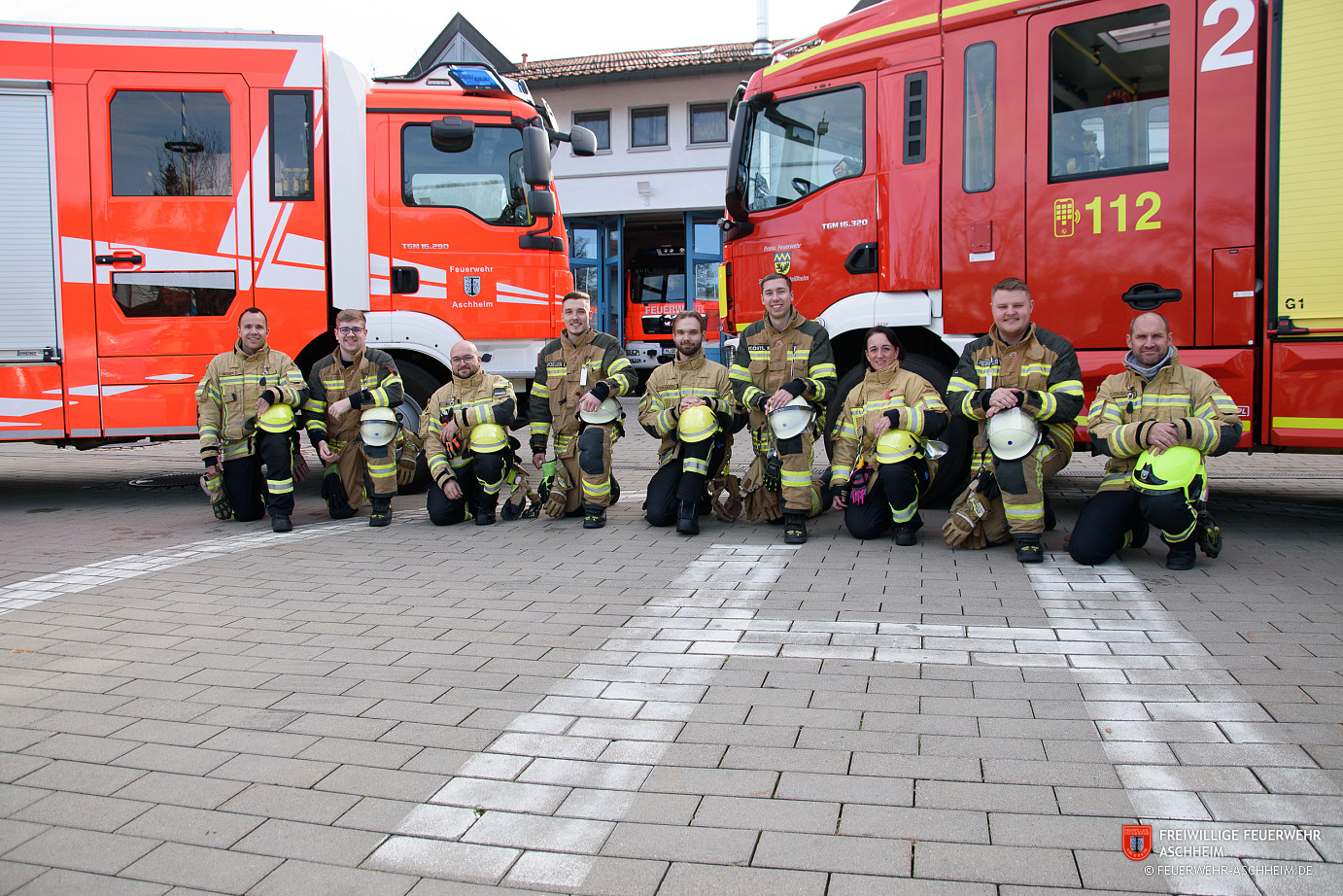Im Zeitraum vom 13. September bis 13. November 2025 führte die Freiwillige Feuerwehr Aschheim den Lehrgang zur Ausbildung von Atemschutzgeräteträgern durch. Die Ausbildung umfasste theoretische Grundlagen sowie umfangreiche praktische Übungen, insbesondere Gewöhnungs- und Belastungsübungen mit Filter- und Pressluftatmern sowie taktische Module wie Schlauchmanagement, Türöffnung, Vorgehen unter Nullsicht und Menschenrettung. Ein Schwerpunkt lag auf der praktischen Umsetzung der Inhalte in realitätsnahen Trainingssituationen. Sechs Teilnehmer absolvierten zusätzlich eine Einsatzübung in der Brandsimulationsanlage, um das taktische Vorgehen unter einsatzähnlichen Rahmenbedingungen weiter zu vertiefen. Dazu kommen zwei weitere Teilnehmer, die bereits die Befähigung zum Chemikalienschutzanzugträger absolviert haben.