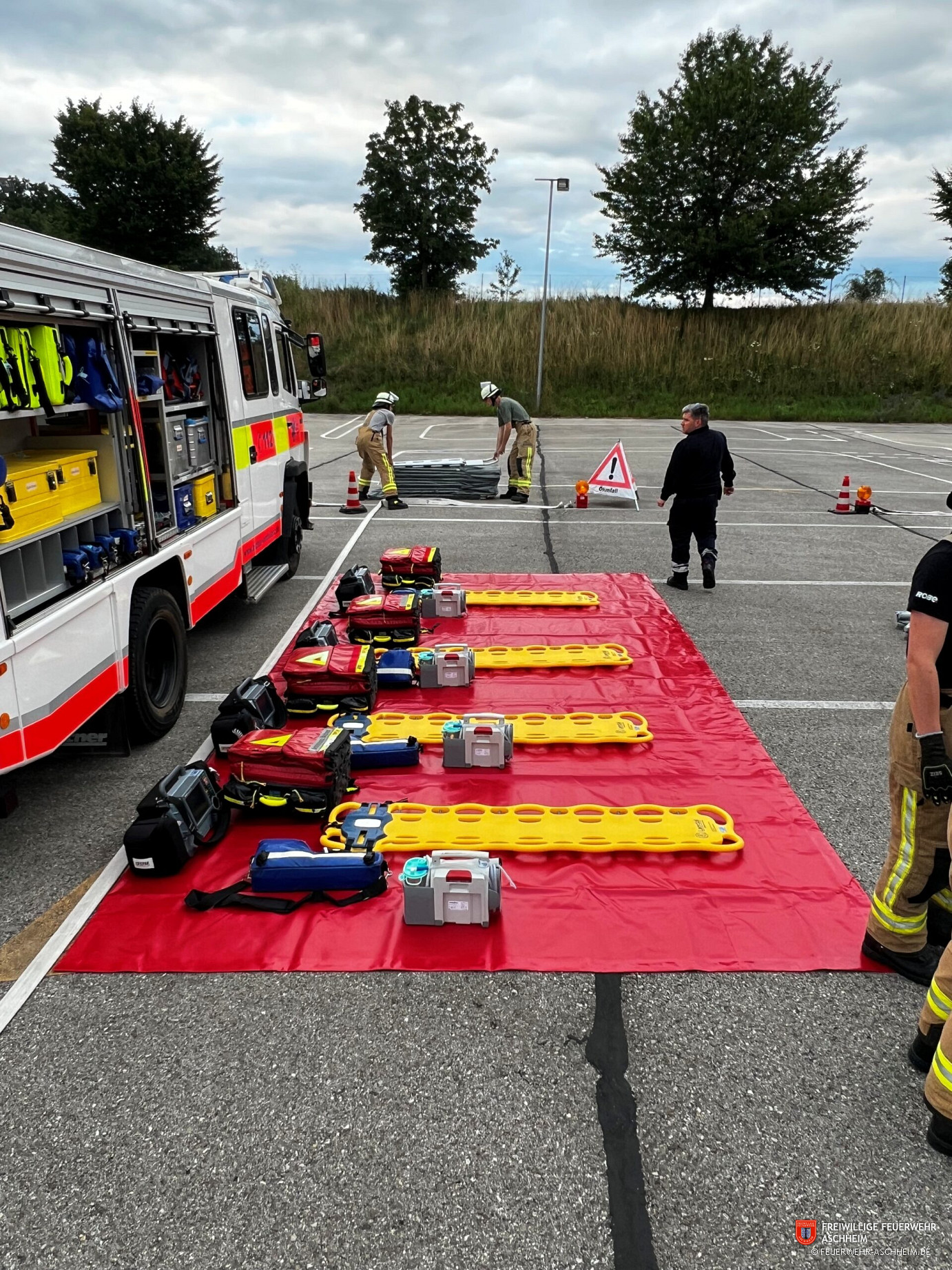 Die Feuerwehr Aschheim führte eine praxisnahe Übung zum Aufbau einer Sammelstelle für einen MANV (Massenanfall von Verletzten) durch. Ziel war es, die Abläufe und die Zusammenarbeit im Einsatzfall zu trainieren, um im Ernstfall effizient und strukturiert handeln zu können.