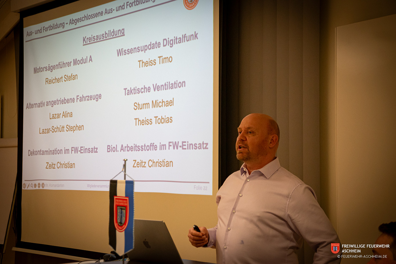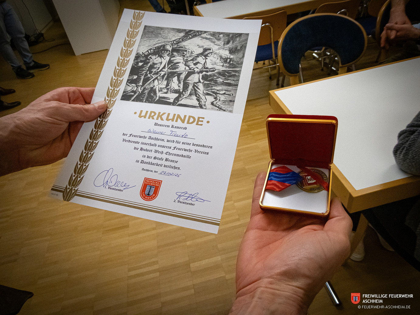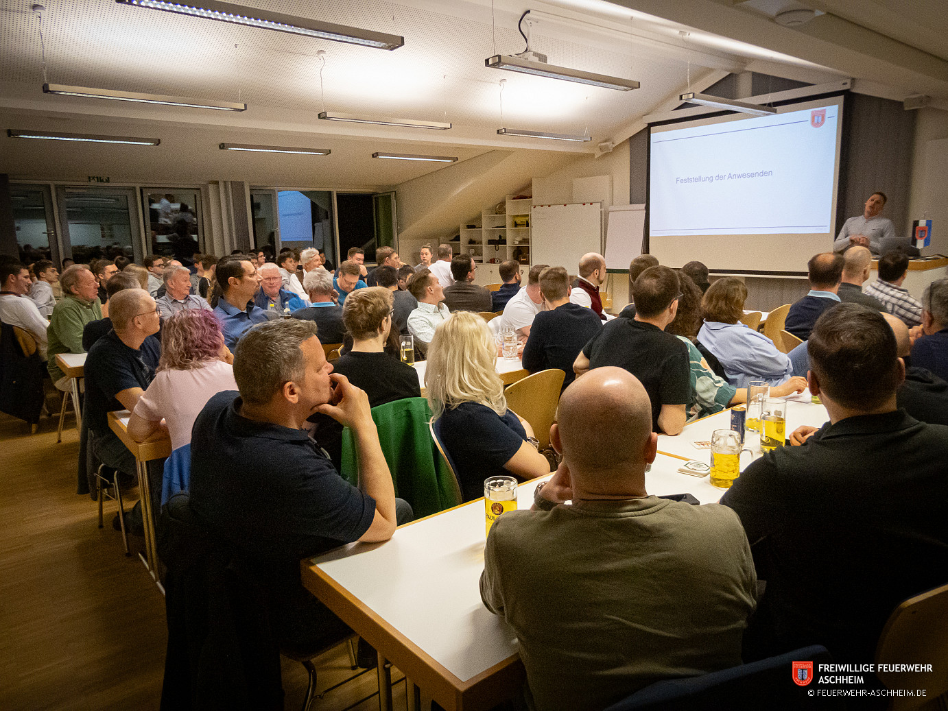 Am 27.02.2026 fand unter der Leitung des Vorsitzenden Christian Drews im Feuerwehrgerätehaus die jährliche ordentliche Mitgliederversammlung des Freiwilligen Feuerwehr Aschheim e.V. statt. Hierzu waren alle aktiven, passiven und fördernden Mitglieder sowie die Ehrenmitglieder eingeladen. Insgesamt nahmen 92 Mitglieder an der Versammlung teil.