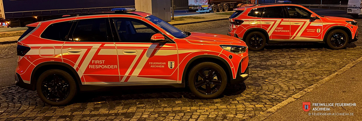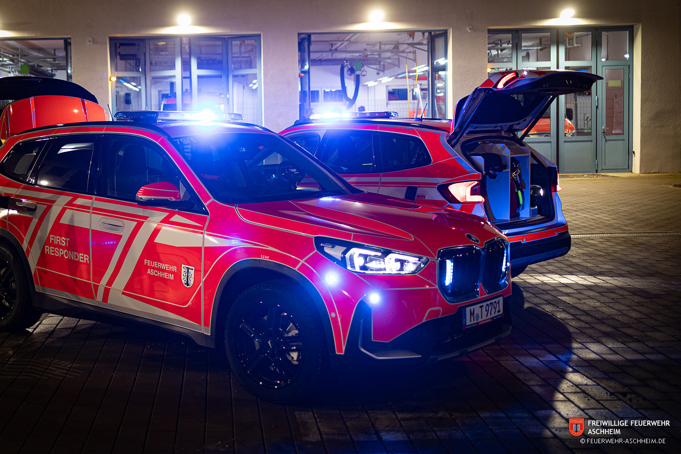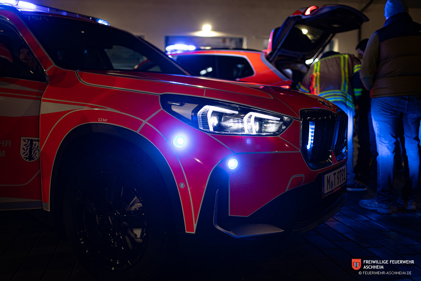 Am Donnerstag, den 11. Dezember 2025, war es nach rund 18 Monaten Planungs- und Beschaffungszeit endlich so weit: Die beiden neuen, schraubengleichen First Responder-Fahrzeuge „Florian Aschheim 79/1“ und „Florian Aschheim 79/2“ auf Basis eines BMW X1 konnten bei der Firma Compoint in Forchheim übernommen werden.